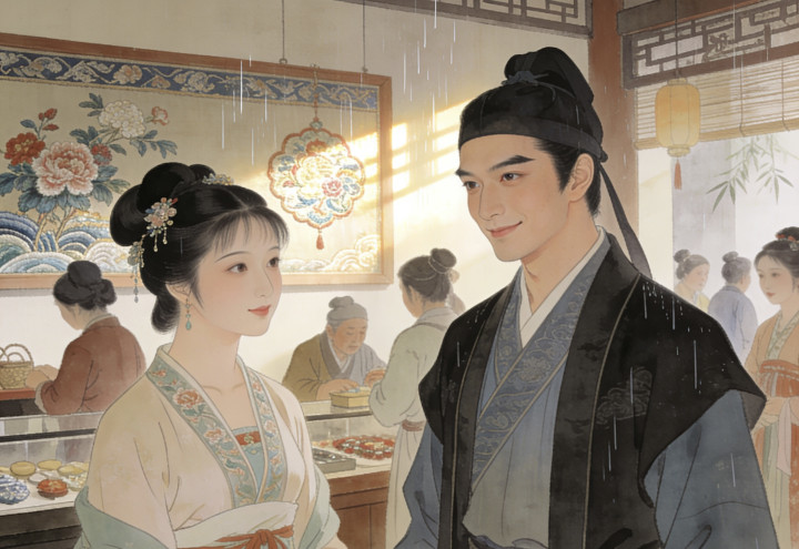 “临风哥,还在忙呢?”邻居家的阿芸姑娘撑着油纸伞走进来,手里提着一个小食盒,“这是我娘刚做的桂花糕,给你送些来。”